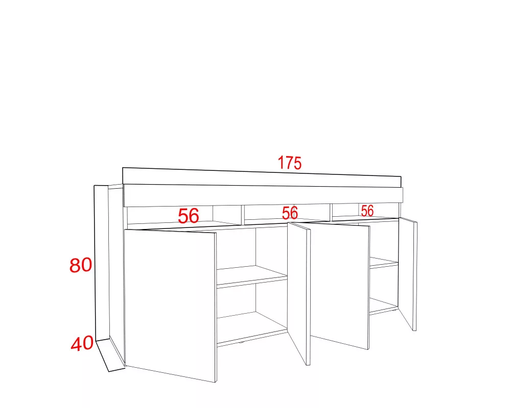 Elegáns, modern, egyszerű, letisztul komód. A termékcsalád többi elemével kombinálva gyönyörű, egyedi nappali sort lehet összeállítani.