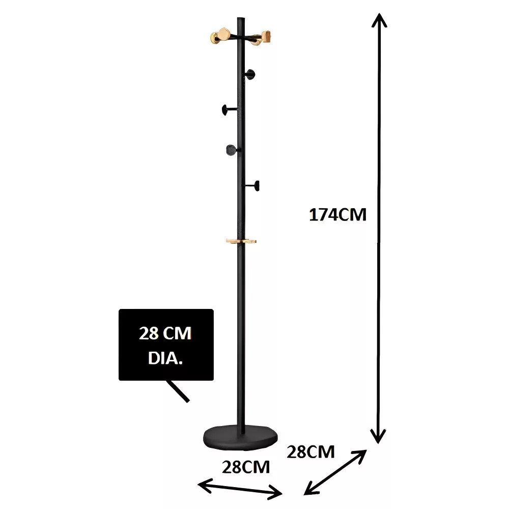 Ruhaakasztó, fehér vagy fekete színben kapható. Az akasztó kampói natúr színű fából készültek. A fő oszlop acélcsőből készült, 174 cm magas, és egy 28 cm átmérőjű megerősített padlólappal rendelkezik. Az alsó 4 kampó mindegyikének teherbírása 0,5 kg, a felső és a középső 4 kampó pedig akár 2 kg-ot is elbír. A ruhaakasztó teljes maximális teherbírása így akár 18 kg is lehet.