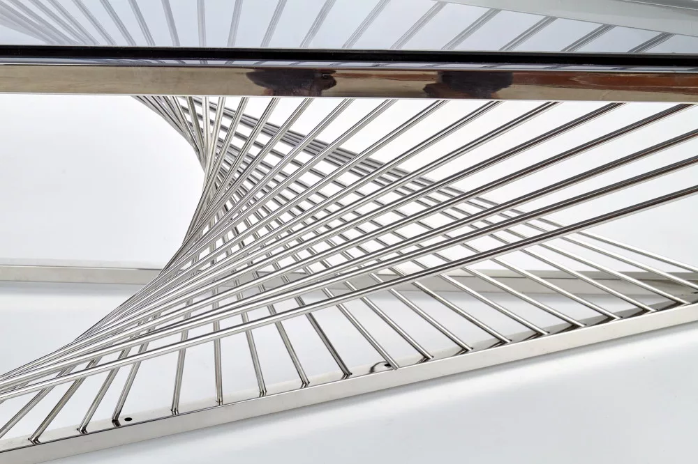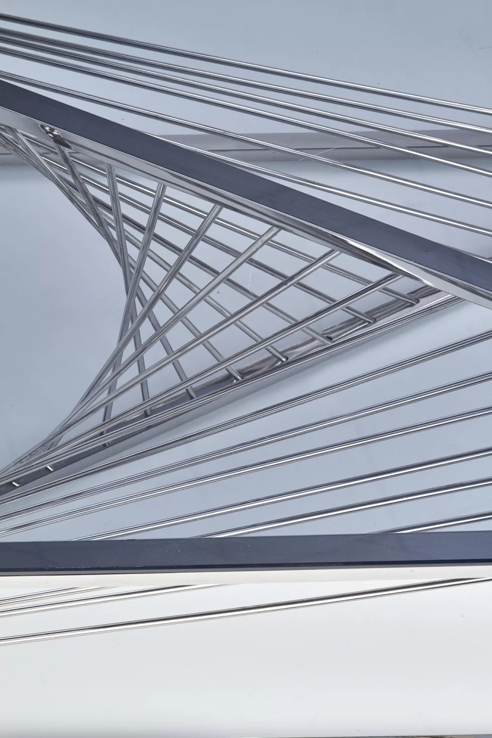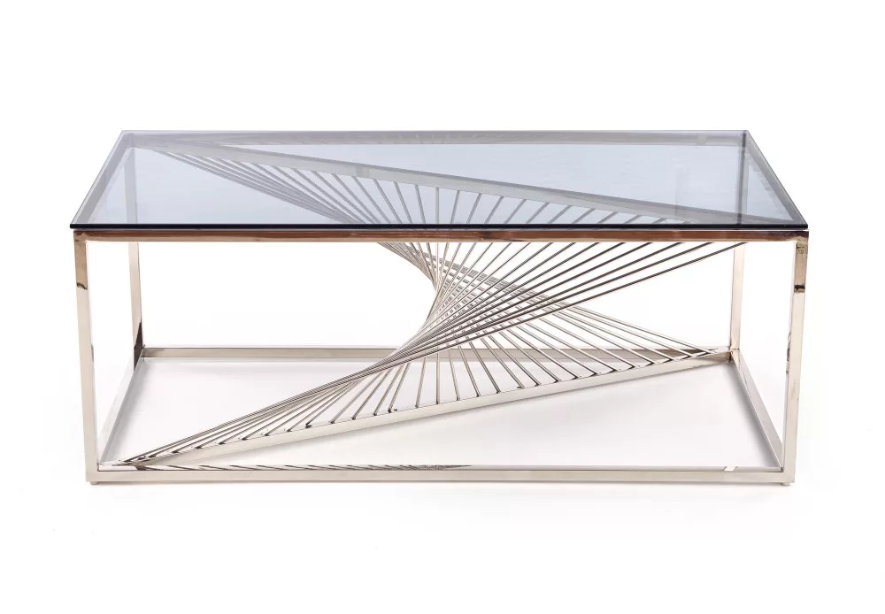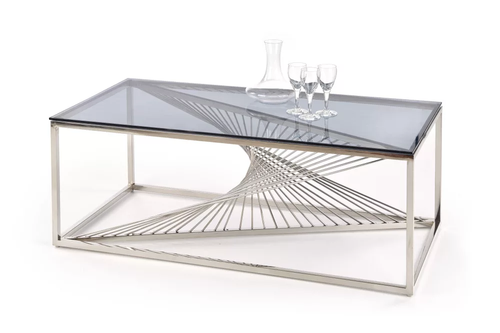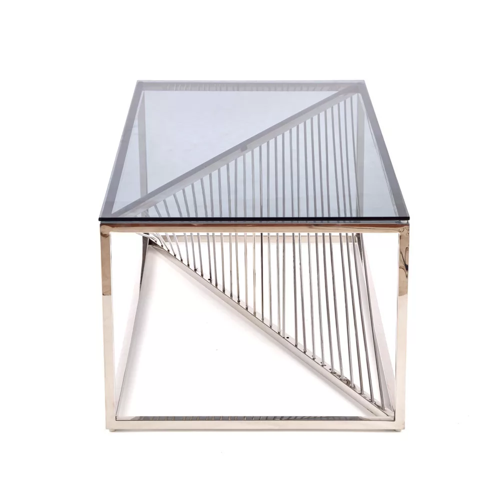 Elegáns megjelenésű, modern kialakítású dohányzóasztal. A füstős színű asztallap üvegből, míg a láb krómból készült.