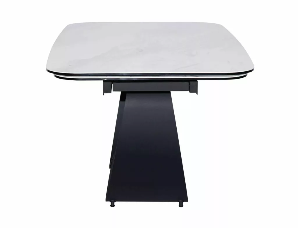 Meghosszabbítható asztal, teteje: edzett üveg + NATURE CLOUD kerámia, váz: fém, szín: matt fehér / matt fekete.