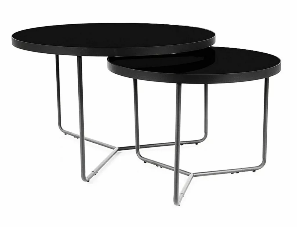 Kávézóasztal szett, asztallap: edzett üveg, keret: fém, szín: fekete / fekete. A kisebb asztal méretei: