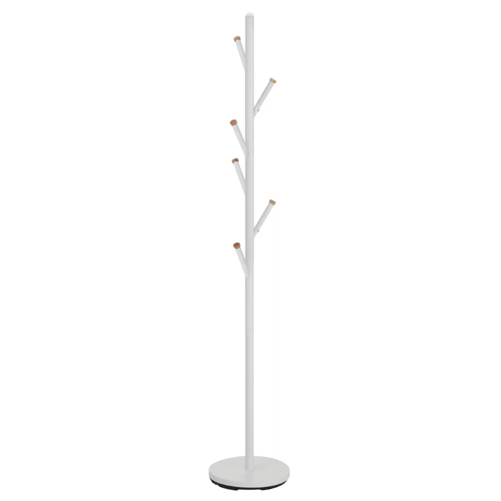 Modern ruhaakasztó fekete vagy fehér színben. A keret acélból készült és porfestett. Az akasztóhorgok végei gumifából készültek. Max. teherbírás 10 kg.