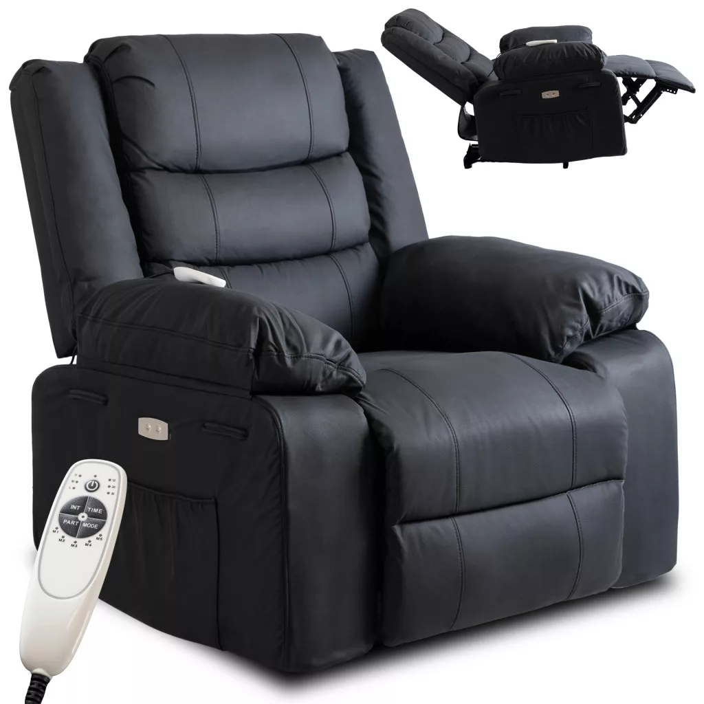 JASPER Elektromos Dönthető Masszázsfotel, Fekete, Ökobőr