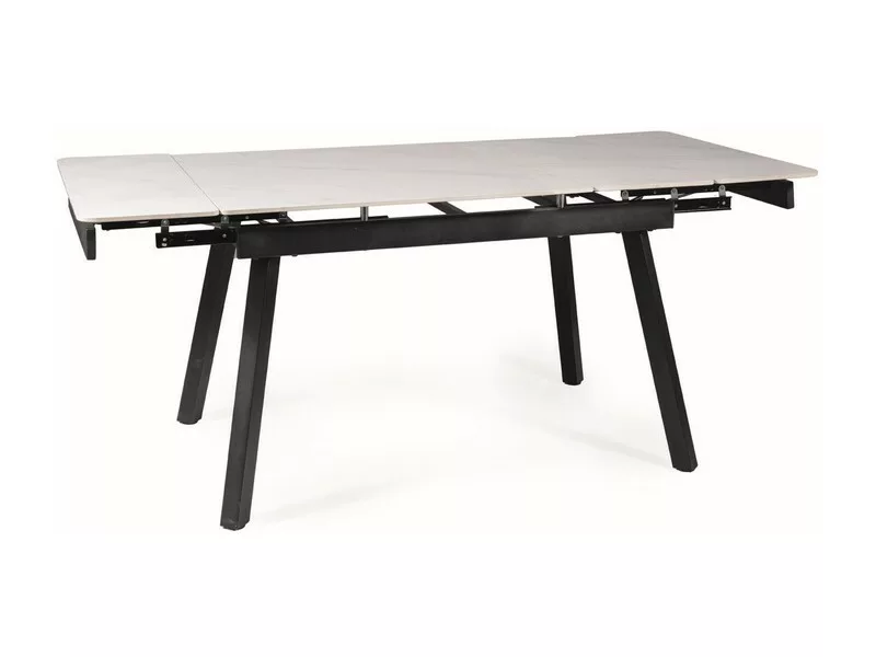 Meghosszabbítható asztal, asztallap: kerámia, márványhatású, keret: fém, szín: fehér / matt fekete.