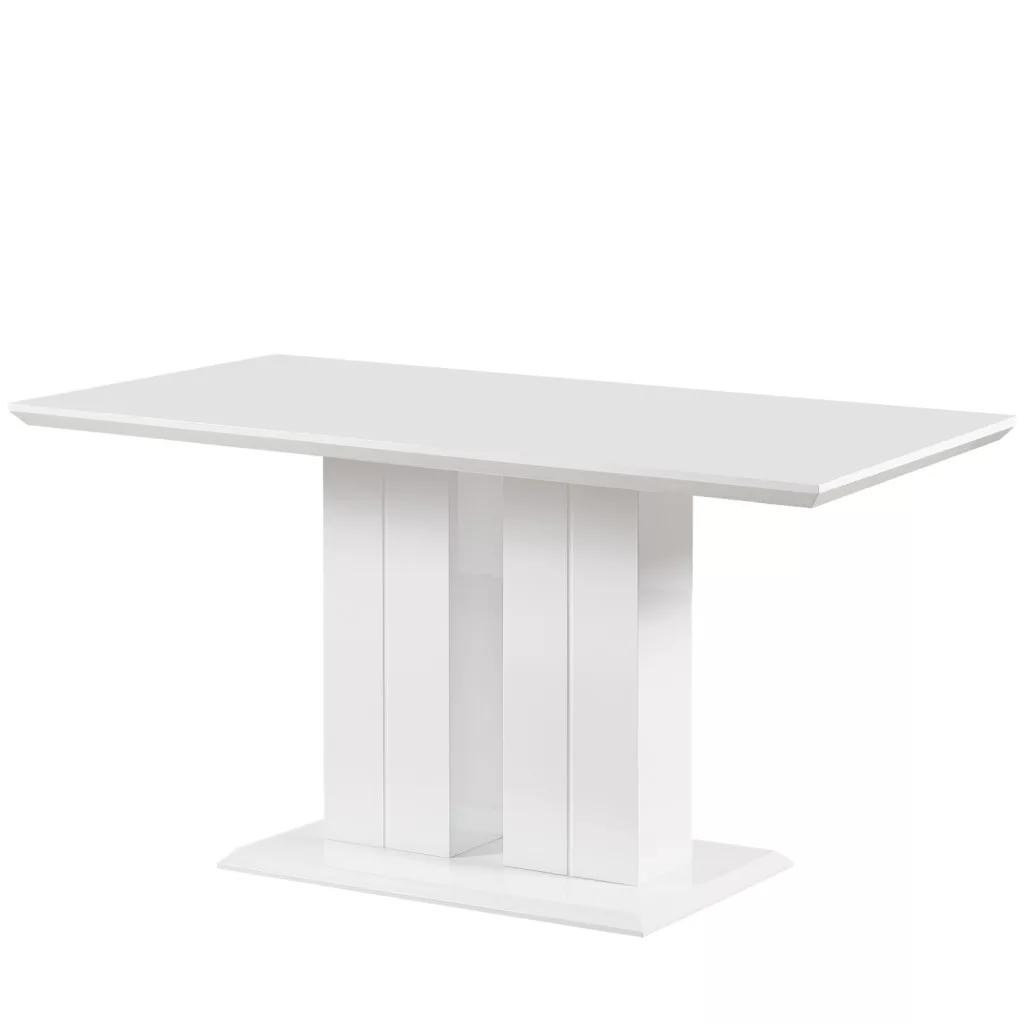 Modern étkezőasztal, amely különböző méretekben kapható. Az asztal elegáns fehér színű, magasfényű felülettel. MDF anyagból készült. Az asztallap vastagsága 4 cm. Max. teherbírás 130 kg.