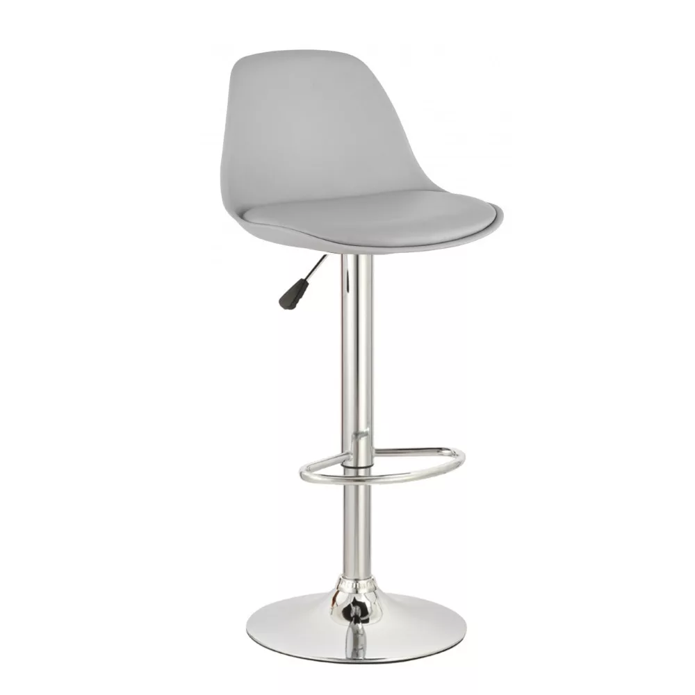 Praktikus bárszék állítható magassággal és forgatható funkcióval, teljesen fekete vagy szürke változatban, krómozott lábbal. Az ülőfelület PP anyagból készült, műbőr kárpitozással. Az ülőfelület magassága 62 és 82 cm között állítható. A szék lábazata fémből készült.