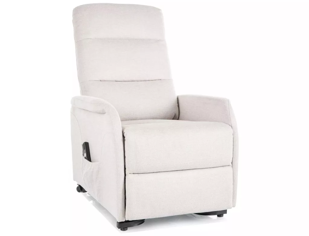 Reclining Armchair Jupiter M Brego egy modern, elektromosan állítható bútor, amely ideális otthonába, legyen szó nappaliról vagy hálószobáról. A világos bézs és fekete színkombináció eleganciát sugároz, míg a beépített masszázs funkció garantálja a maximális kényelmet. Praktikus oldalsó zsebe lehetővé teszi a távirányítók tárolását, így mindig kéznél van, amikor a pihenés ideje elérkezik.