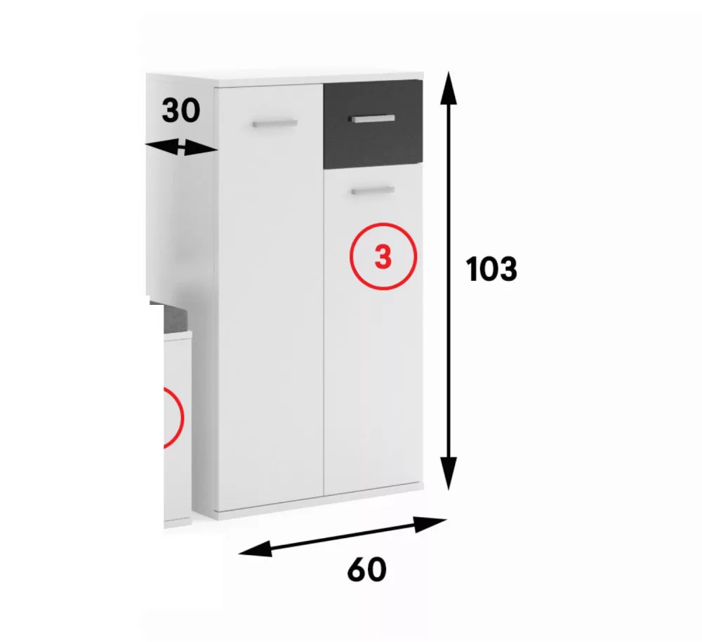 Justus 3 Előszobai komód fehér-fekete