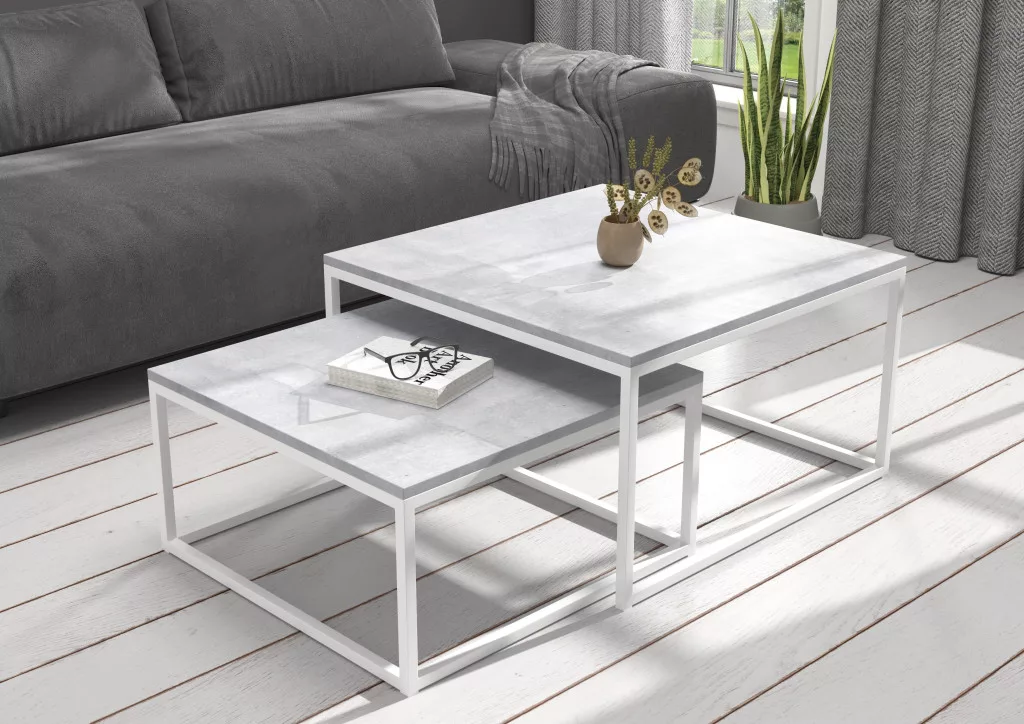 KAMA 2 az 1-ben kávéasztal, Fehér, Beton