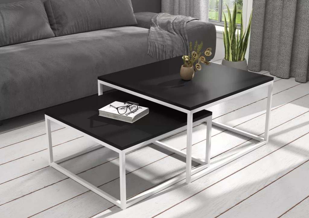 KAMA 2 az 1-ben kávéasztal, Fehér, Fekete