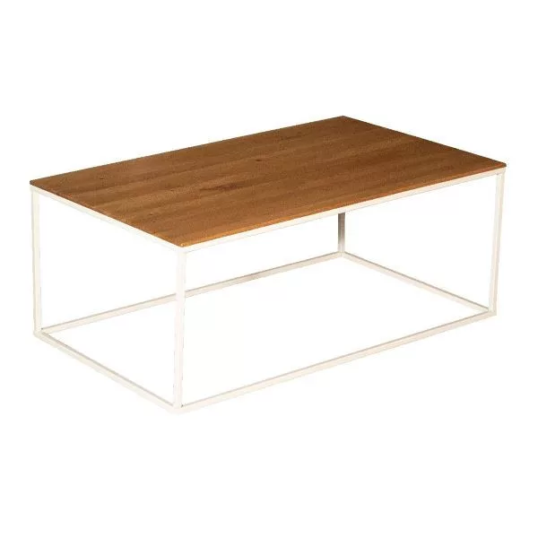 Modern dohányzóasztal barna színű tömör olajozott tölgy és fehér matt fémkeret kombinációja. A lemez vastagsága 18 mm. A fémcsövek vastagsága 15x15mm. Maximális súly: 15 kg.