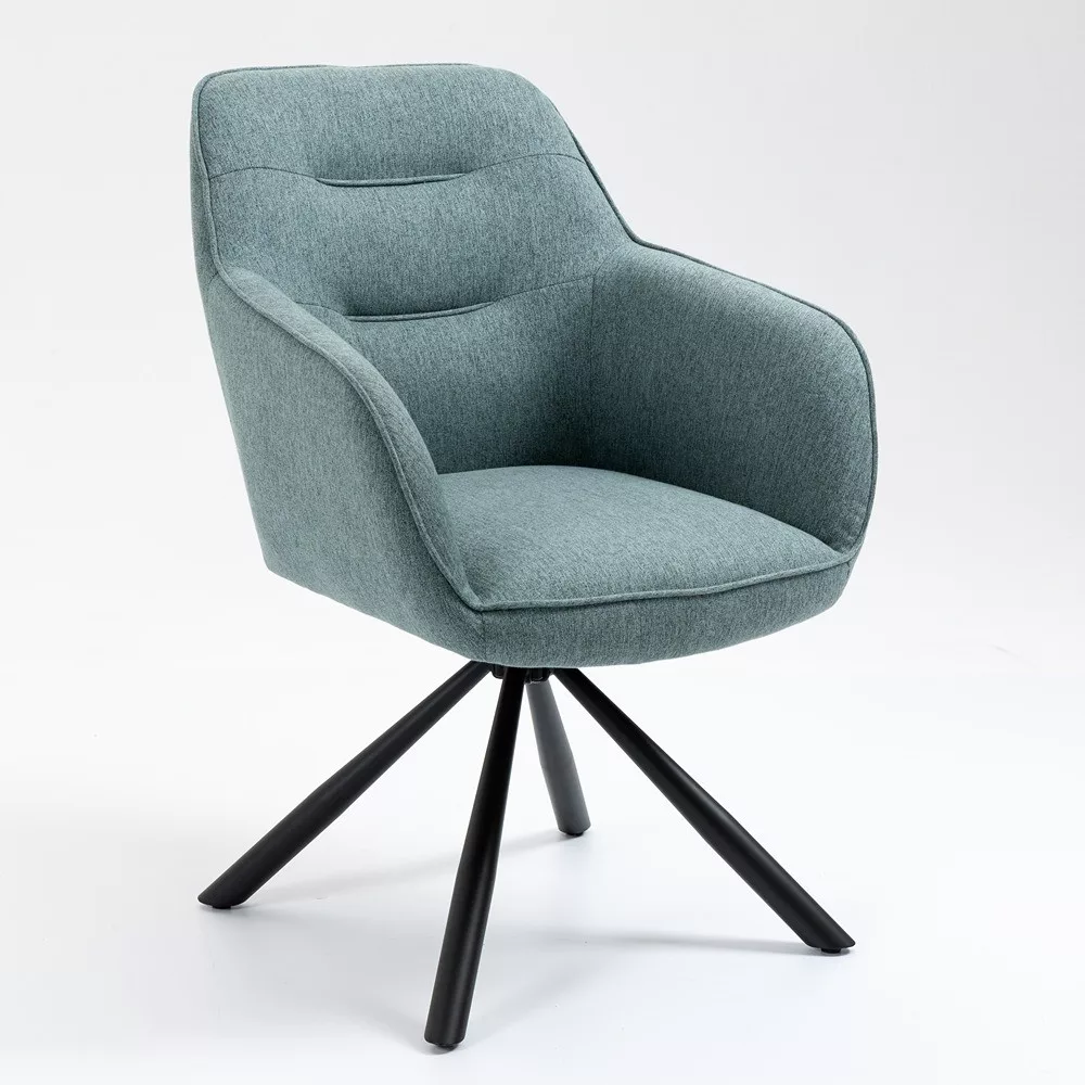 Kényelmes étkezőszék karfákkal, amely remekül fog mutatni otthonában. Az egész szék puha szövettel kárpitozott, a háttámlán pedig díszes varrások találhatók. A szék ülőfelülete 45 cm mély és 42 cm széles. Az ülőfelület 48 cm magasságban található a padlótól. Az alapzatban található forgólap lehetővé teszi, hogy a szék ülőfelülete 180°-ban elforduljon. A fekete színű fém alapzat porfestett a jobb védelem érdekében. A szék maximális teherbírása 120 kg.