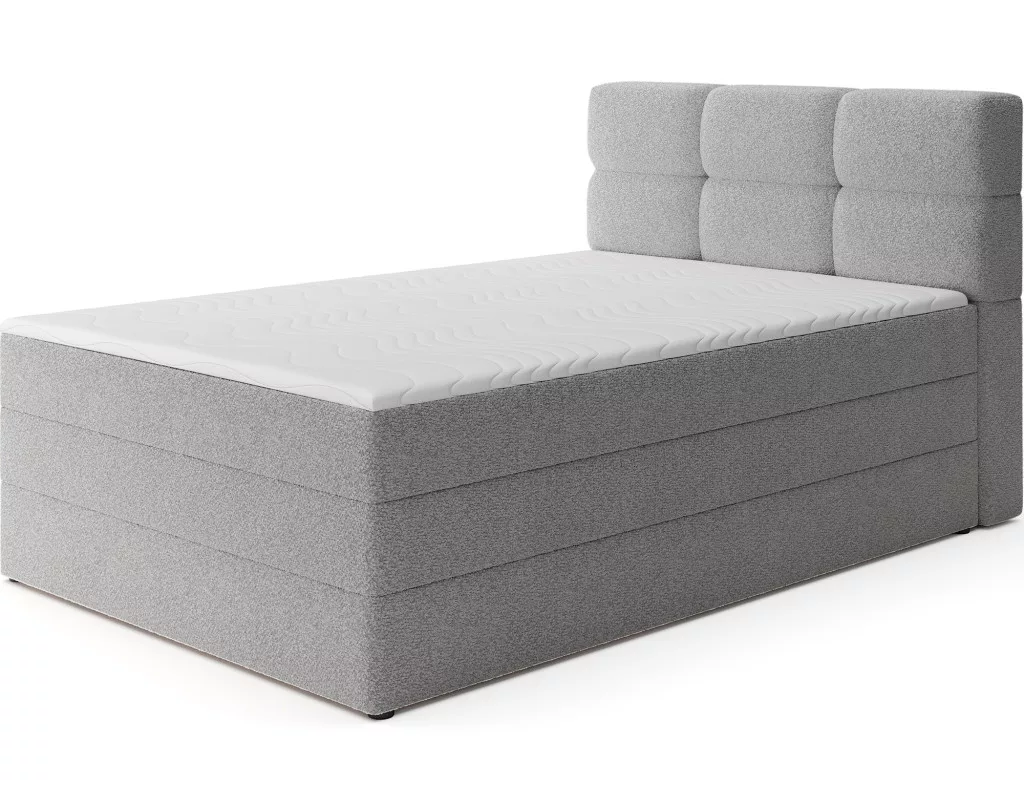 Kasped kontinentális ágy modern és funkcionális választás bármely hálószobába, két méretben kapható: 215x121x108 cm és 215x141x108 cm, így könnyen az egyéni igényekhez és a szoba méretéhez igazítható. Az ágy szerkezete egy masszív, tömör fából és forgácslapból készült vázra épül, amely hosszú távú stabilitást és tartósságot biztosít. A kialakítás középpontjában egy bonell rugós matrac áll, amely fixen rögzítve van a vázhoz, megbízható testtartást biztosít és elősegíti a megfelelő légáramlást az egészséges és ergonomikus alvási élmény érdekében. Ezenkívül az ágy két réteg kiváló minőségű habbal – T2130 habbal és T2540 habbal – rendelkezik, amelyek a bonell rugós egységgel kombinálva fokozzák a rugalmasságot, a kényelmet és a test kontúrjához való alkalmazkodást, támogatva a pihentető és regeneráló alvást. A teljes szerkezetet letisztult vonalak és modern esztétika határozza meg, amelyet a tartós műanyagból készült fekete bútorlábak egészítenek ki, amelyek vizuális könnyedséget biztosítanak, miközben biztosítják a szerkezeti integritást. Rendkívül praktikus tulajdonsága a beépített ágyneműtartó, amely kényelmes tárolóhelyet biztosít paplanok, párnák vagy egyéb textíliák számára, segítve a hálószoba tisztaságát és szervezettségét. A Kasped ágy ötvözi a prémium kidolgozást, a kortárs dizájnt és a mindennapi funkcionalitást, így tökéletesen illeszkedik mind a modern, mind a klasszikusabb belső terekbe.