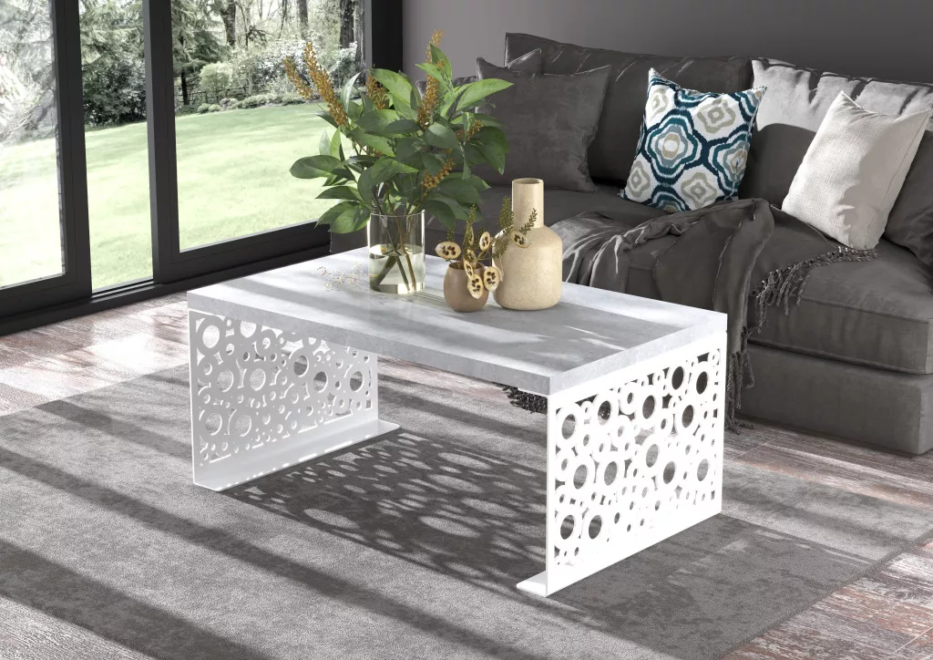Kávézóasztal RINA 100x60, Fehér, Beton
