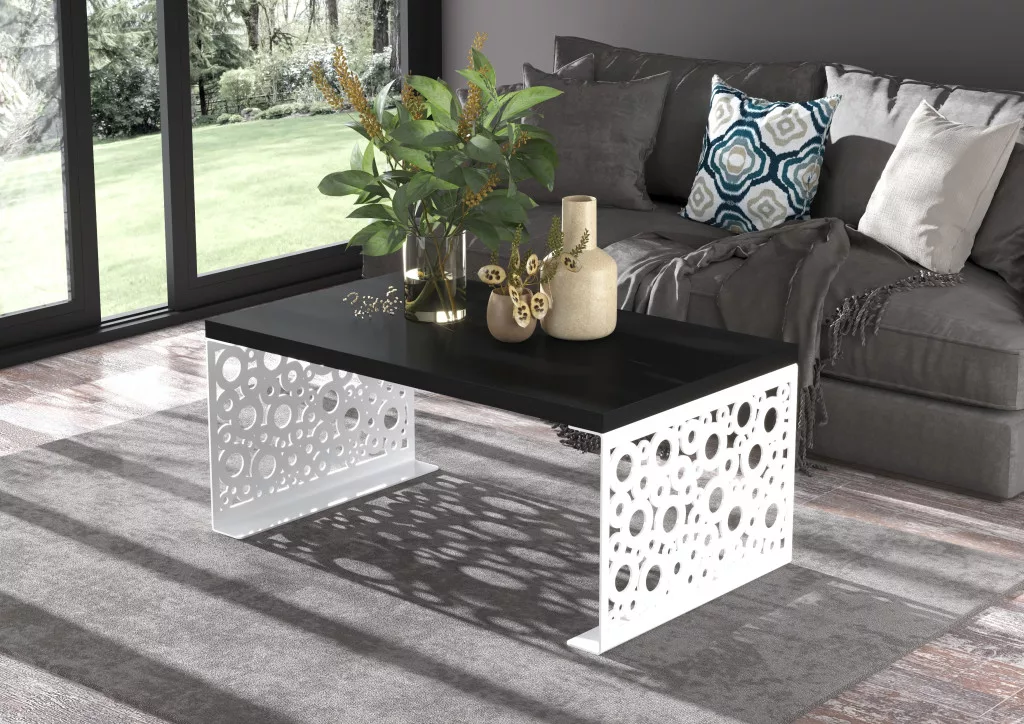 Kávézóasztal RINA 100x60, Fehér, Fekete