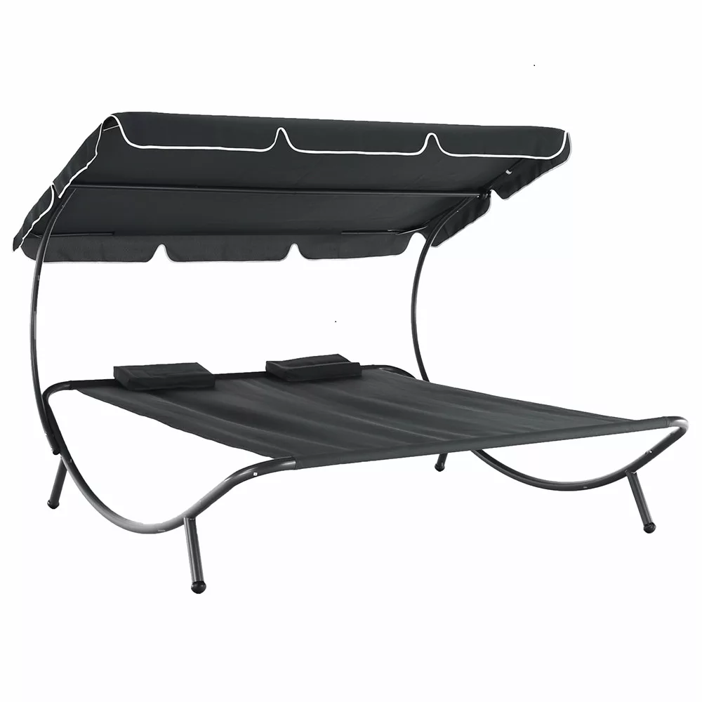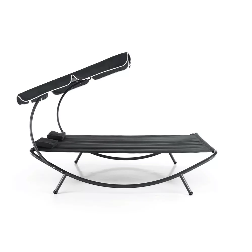 Anyag: acél/poliészter Szín: szürke Méretek (SzxMéxMa): 204x180x147 cm Alvófelület (SzéxHo): 140x204 cm Teherbírás: 180 kg Két személy számára Baldachinnal Két párnával Kerti Modern Szétszerelve szállítjuk