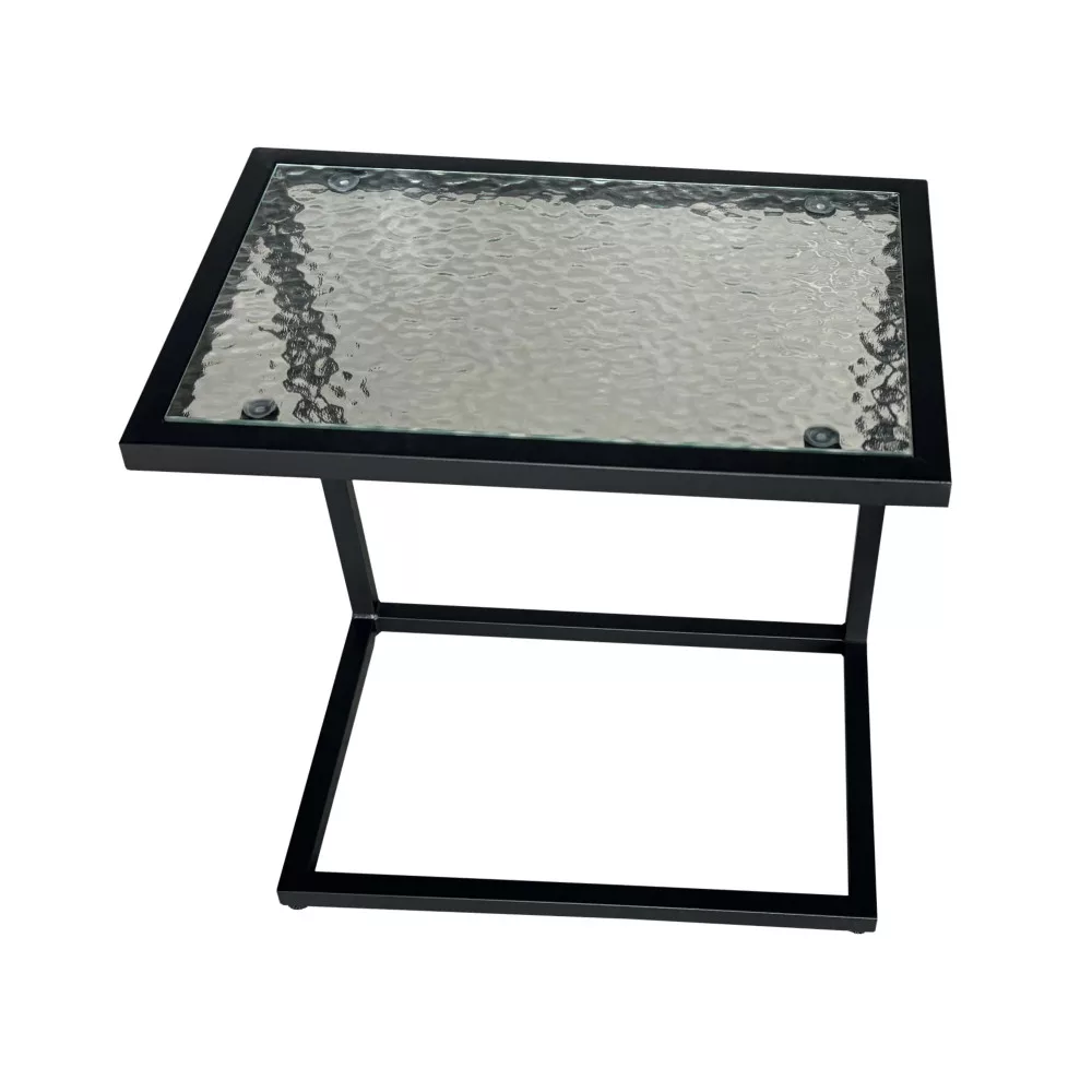 Kerti asztalka, fekete acél/edzett üveg, SELKO