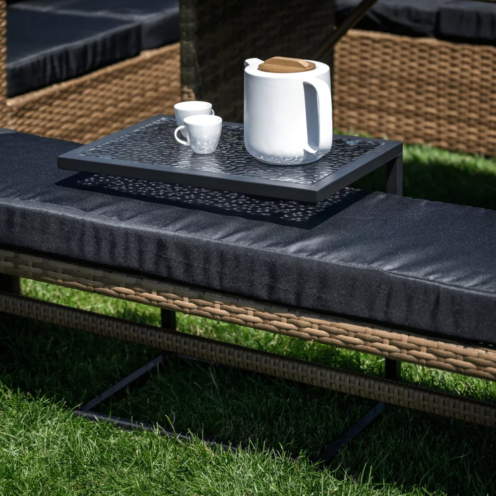 Kerti asztalka, fekete acél/edzett üveg, SELKO Kerti bútorok > Kerti bútor > Kerti asztalok