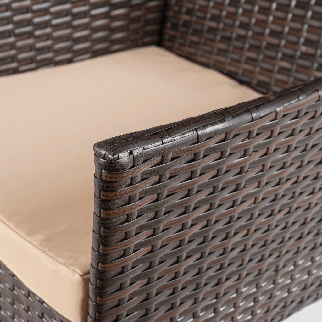 Kerti bútorkészlet MORADO barna/bézs, üveg asztallap, vízálló kárpit. Négyzetes asztal, nem bővíthető.