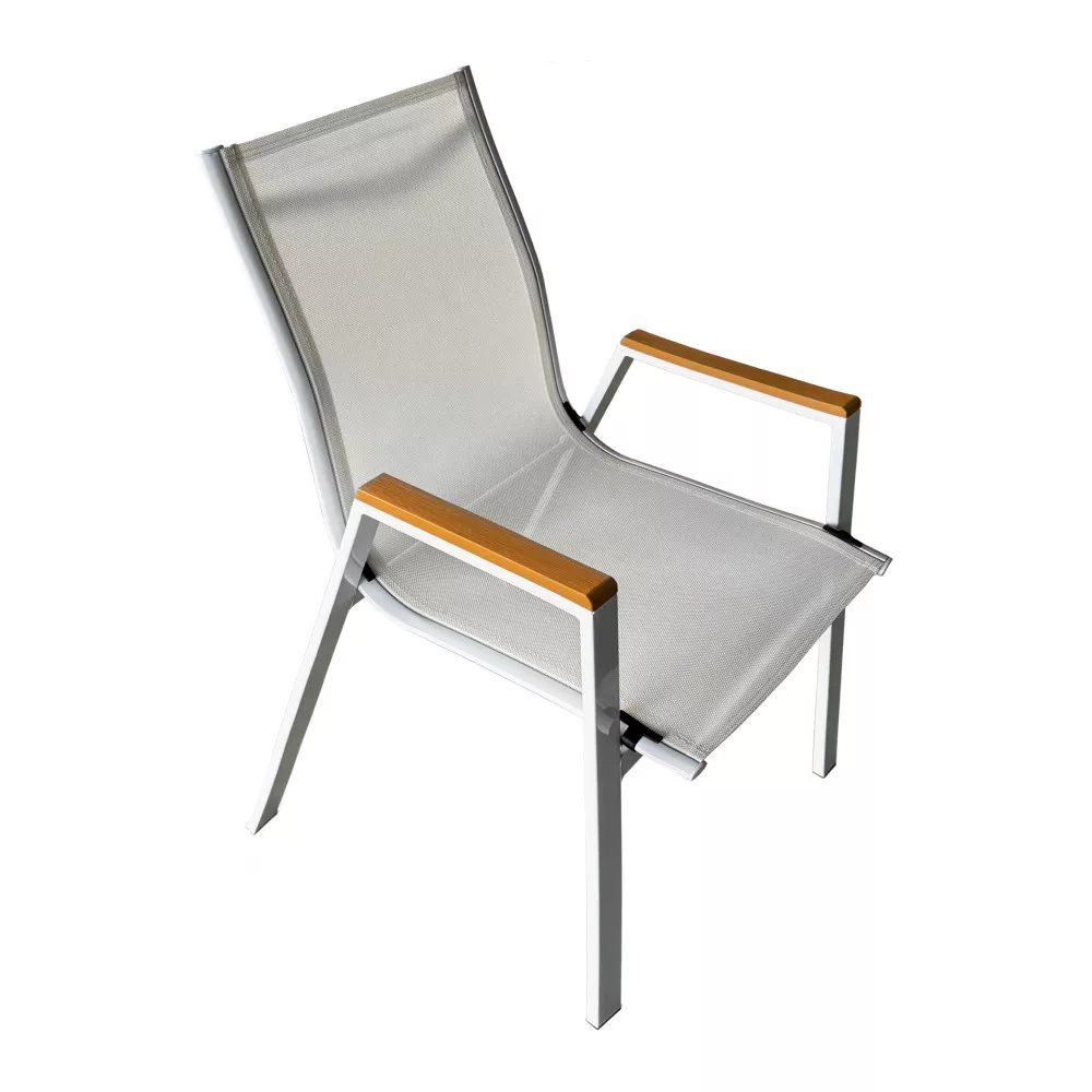 Kerti rakásolható szék, fehér acél/tölgy, BONTO Kerti bútorok > Kerti bútor > Kerti székek