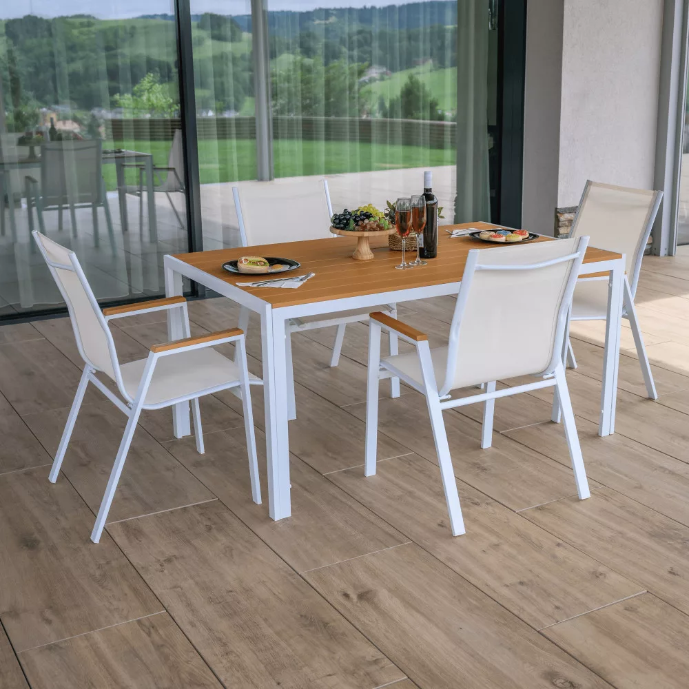 Kerti rakásolható szék, fehér acél/tölgy, BONTO