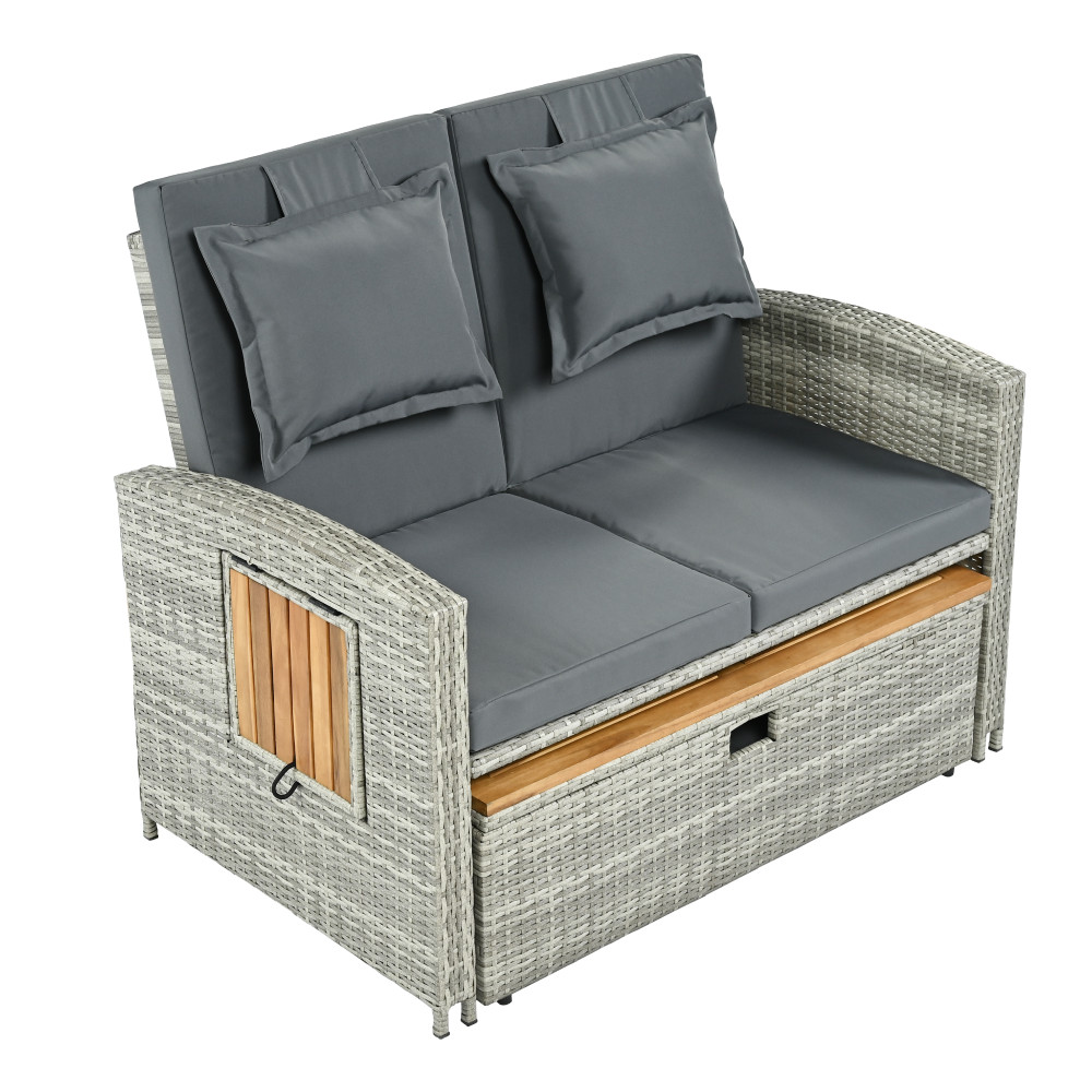 Kerti rattan heverő, szürke/természetes, MALORY