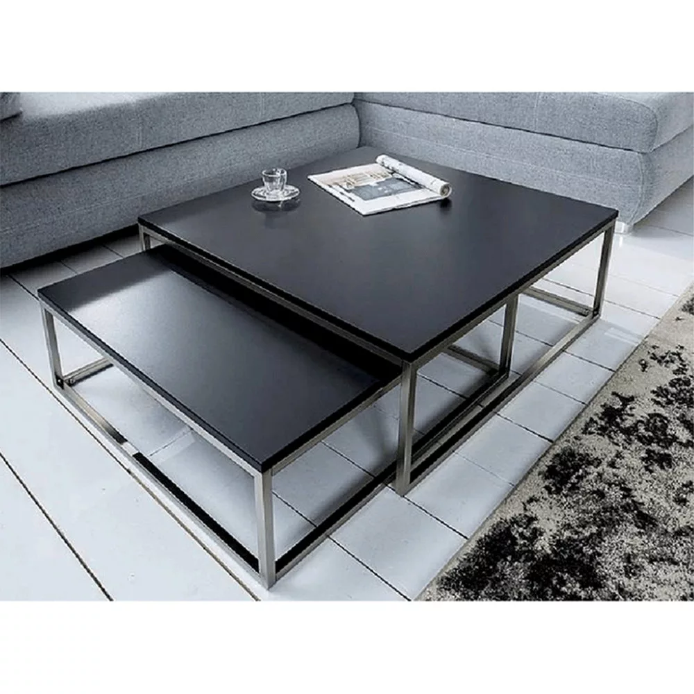 Két részes dohányzóasztal szett, fekete/króm, AMIAS