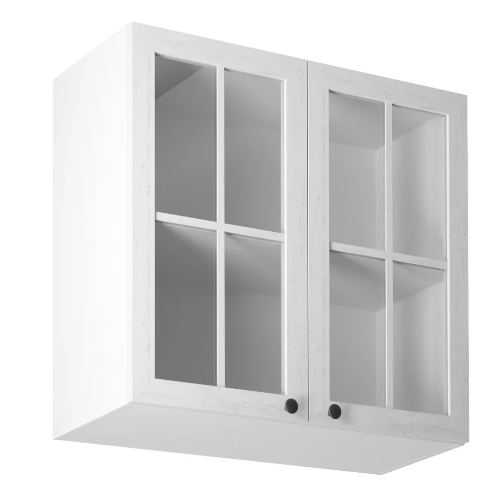 Kétajtós felsőszekrény üveggel G80S, fehér/sosna andersen, PROVANCE