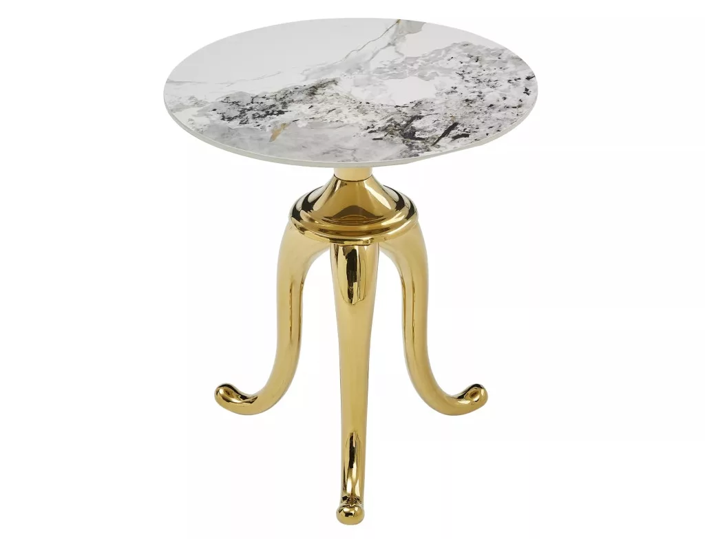 Dohányzóasztal, teteje: , keret: rozsdamentes acél, szín: fényes fehér, márványhatású / arany.