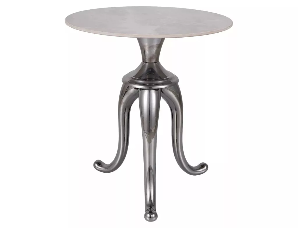 Kígyó dohányzóasztal, ezüst, fehér fényes, márványhatású
