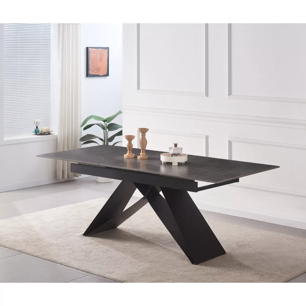 Kihúzható étkezőasztal, beton/fekete, 160-200x90 cm, MAJED