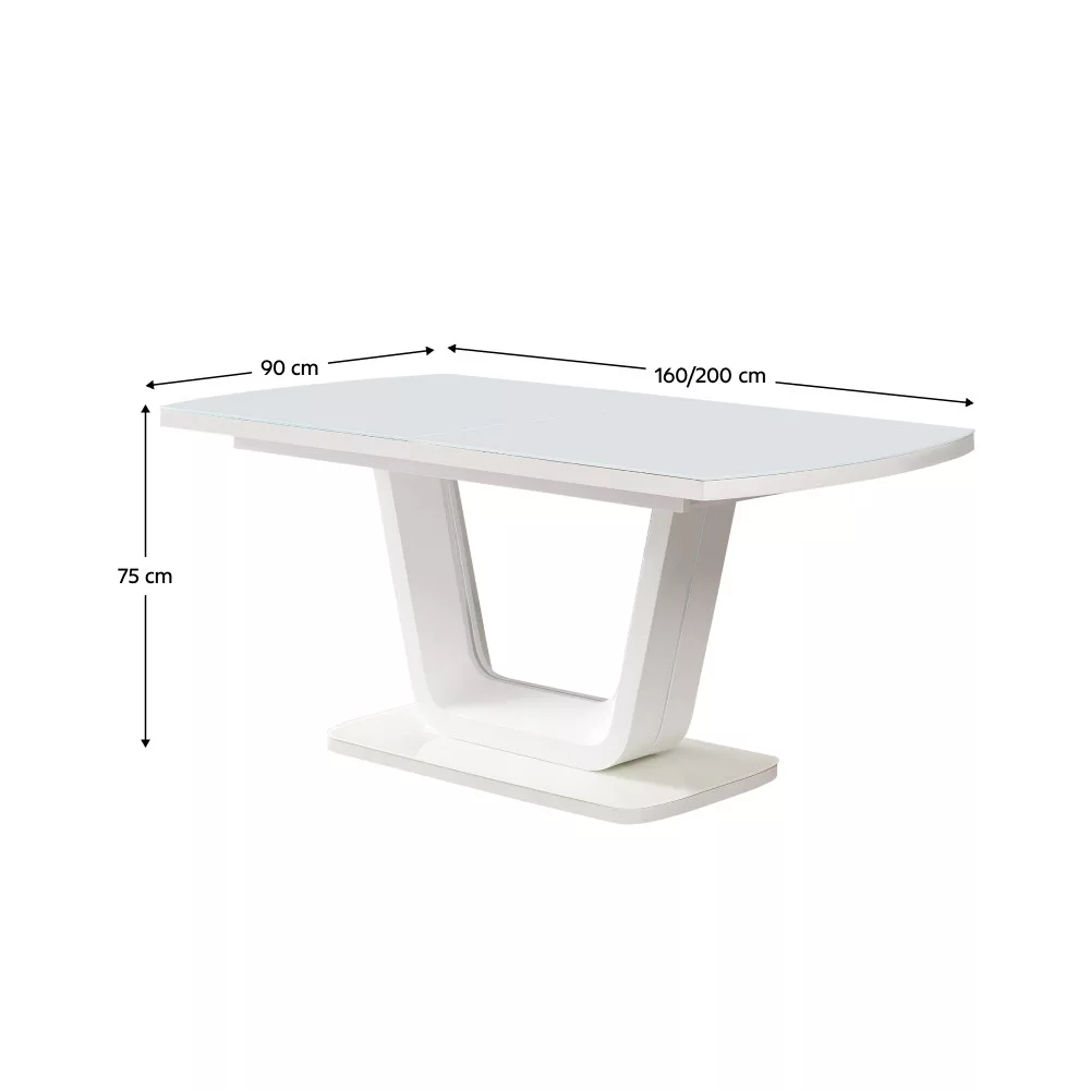 Kihúzható étkezőasztal, fényes fehér, 160-200x90 cm, OLAV