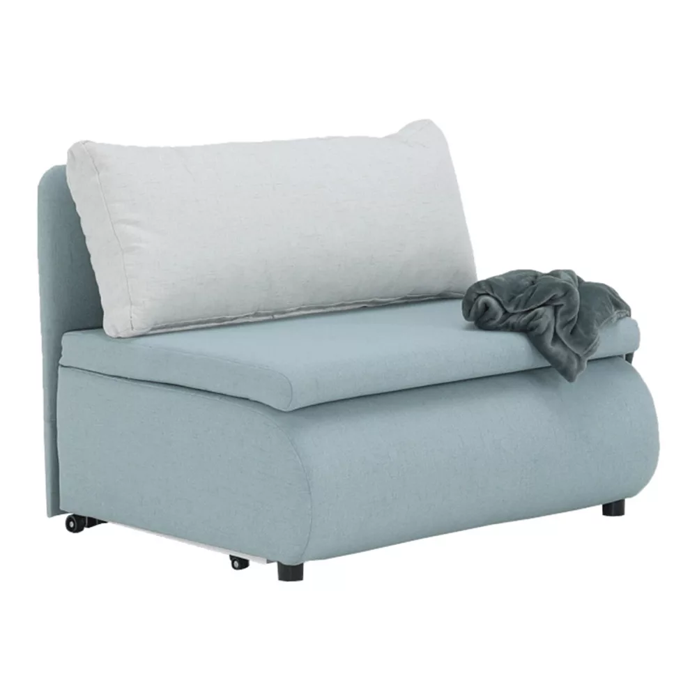 Modern kinyitható KENY NEW fotel tárolóval Anyag: CABLO szövet menta 10/krém 01 A szövet kopásállósága: 72 000 Martindale Méretek (SzéxMaxMé): 100x90x87 cm Fekvőfelület mérete (SzéxHo): 100x196 cm Az alsó tér magassága a padlótól: 5 cm