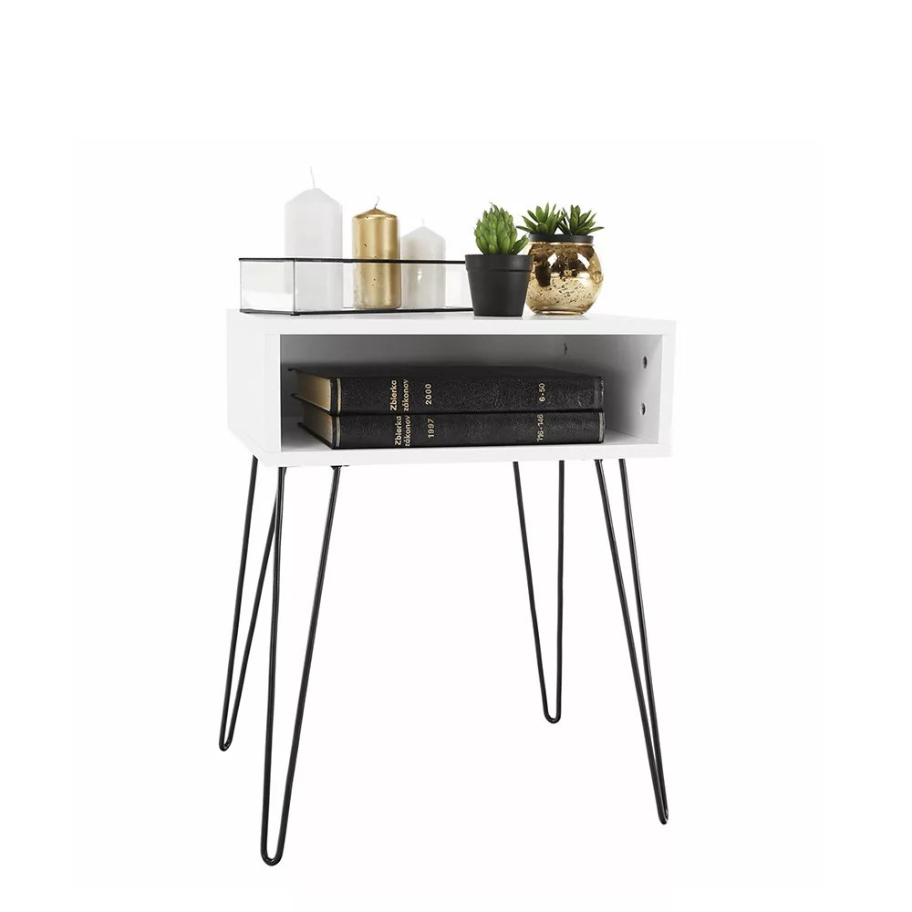 Kisasztal/éjjeliszekrény, fehér/fekete, HONEJ