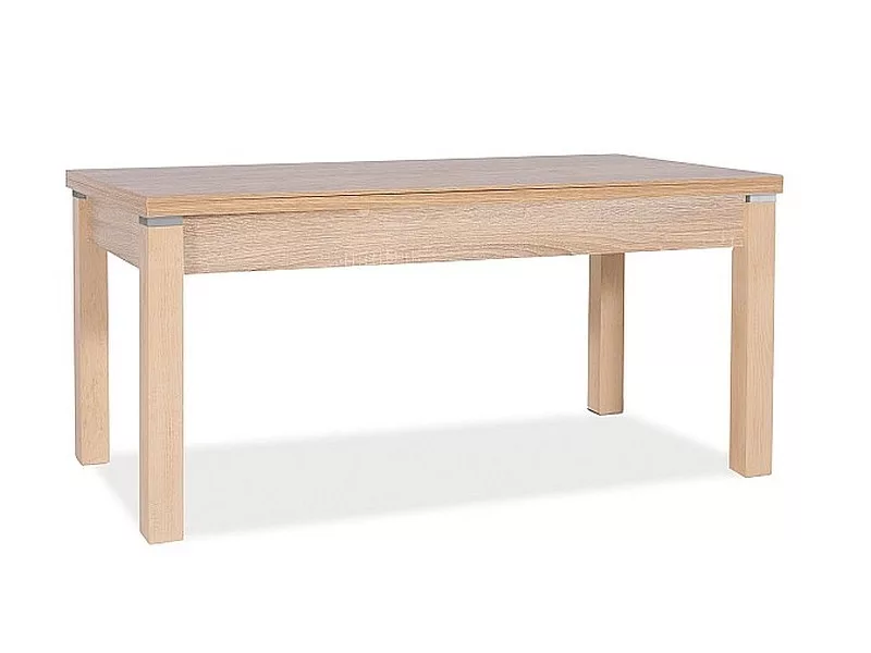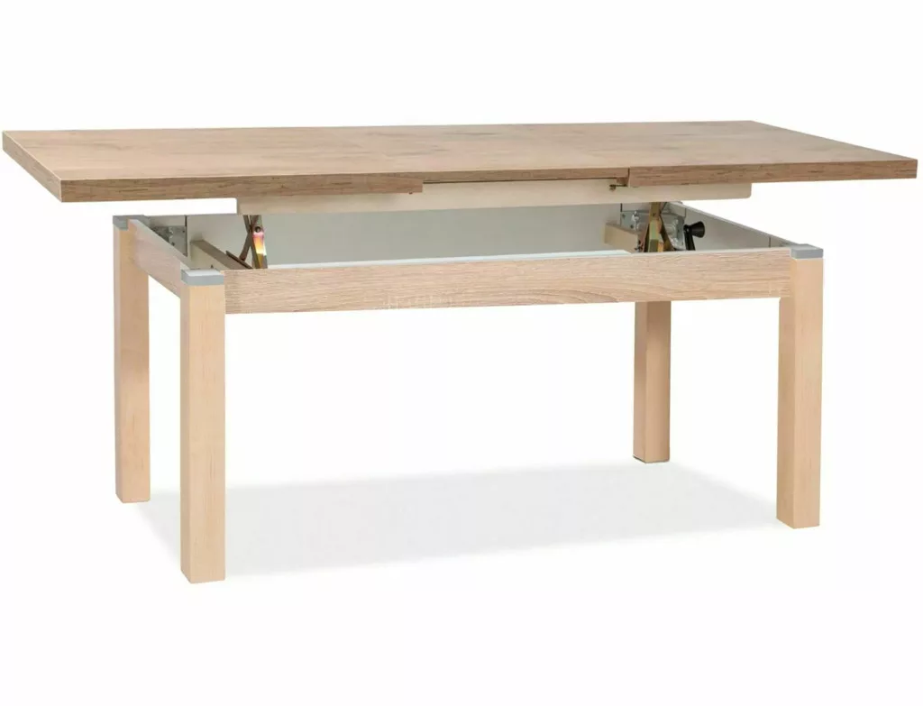 Dohányzóasztal, teteje: laminált forgácslap, váz: fa, szín: sonoma tölgy. Fokozatosan állítható asztallap magasság, maximális magasság 71 cm. Kiegészítő betét, az asztallap hossza kihúzva 164 cm.
