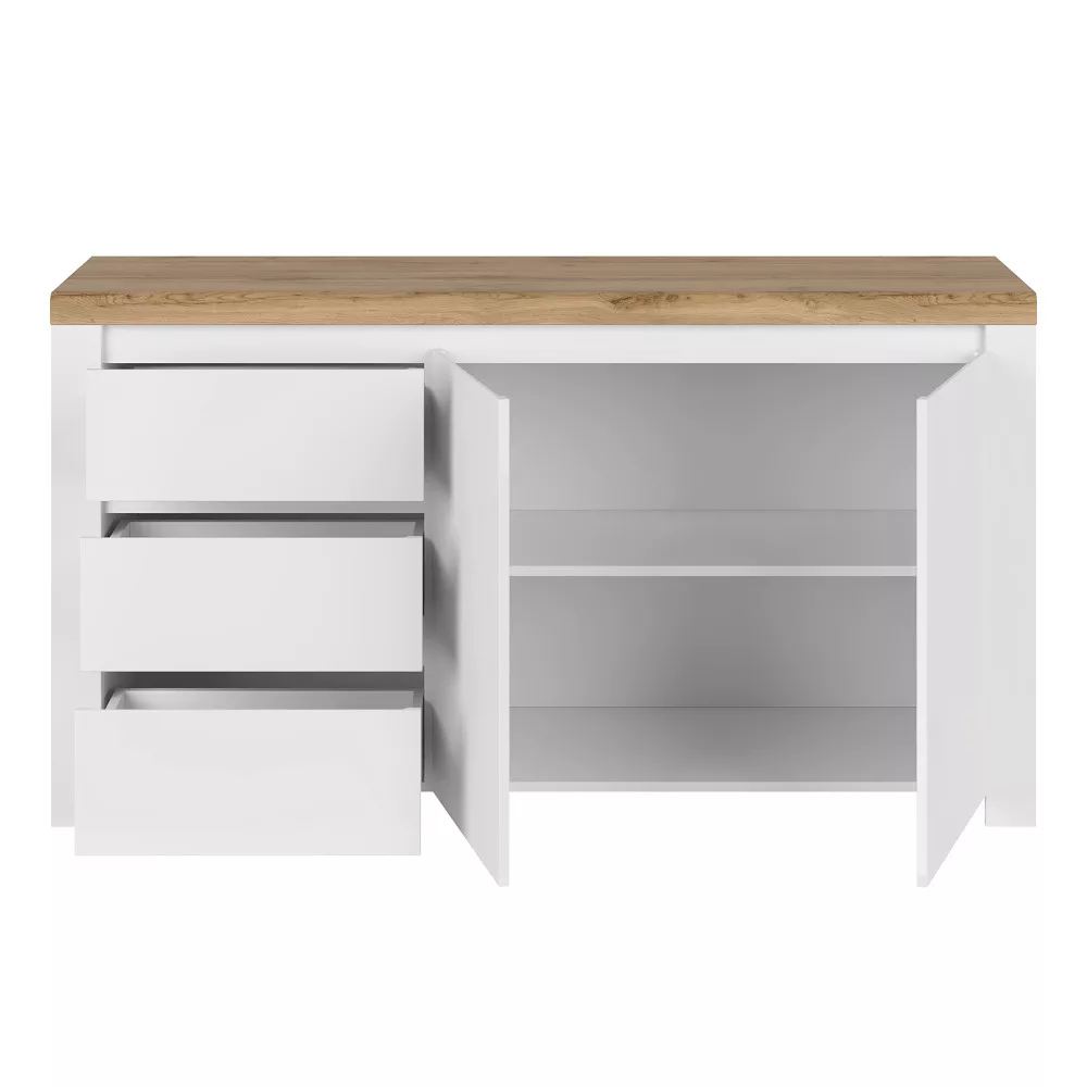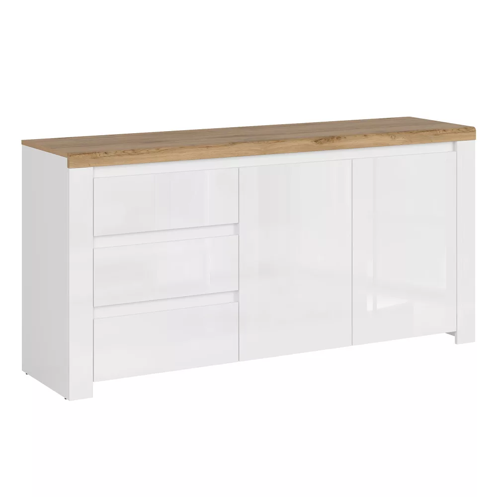 Komód 2D3S, fényes fehér/wotan tölgy, VILGO