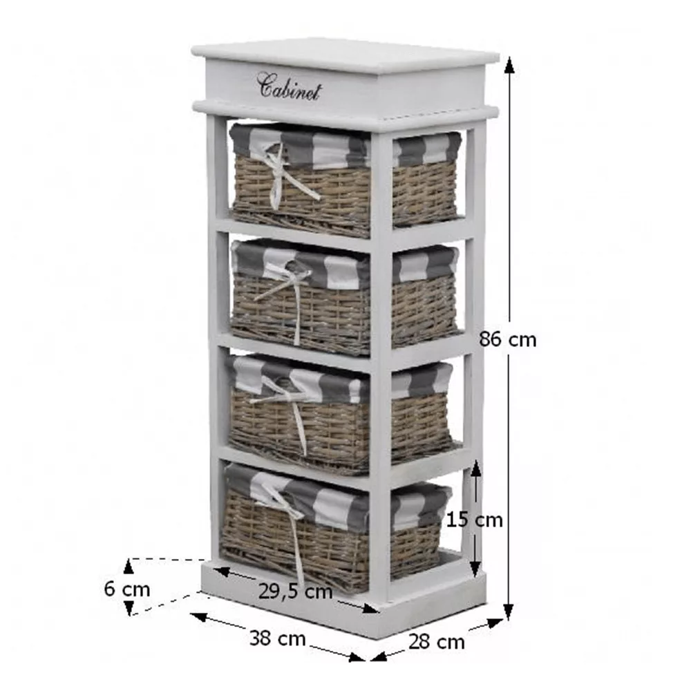 Komód 4 fonott kosárral stabil fakerettel