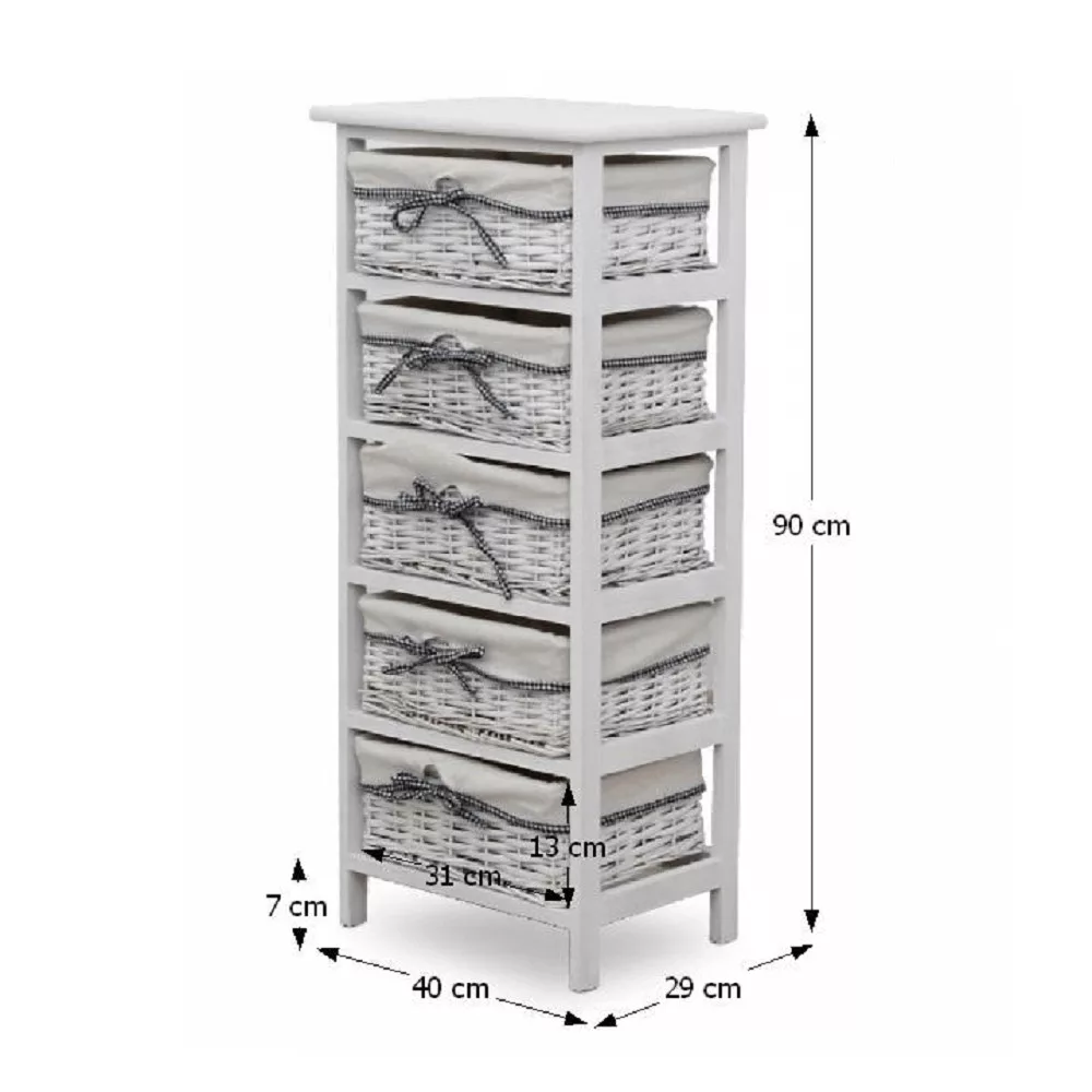 Komód, 5 fiókos, régi fehér, RUBY 5