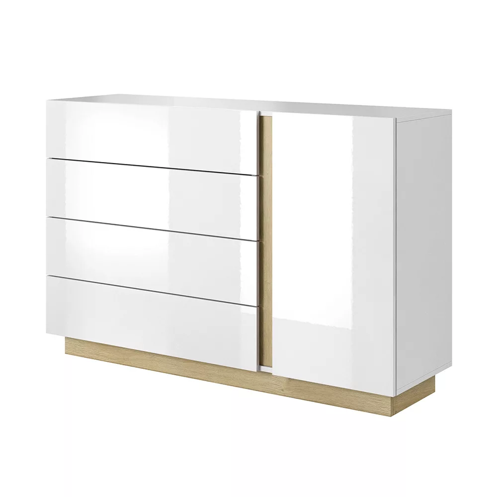 Komód D4S, fehér/grandson tölgy/fehér magas fényű, CITY