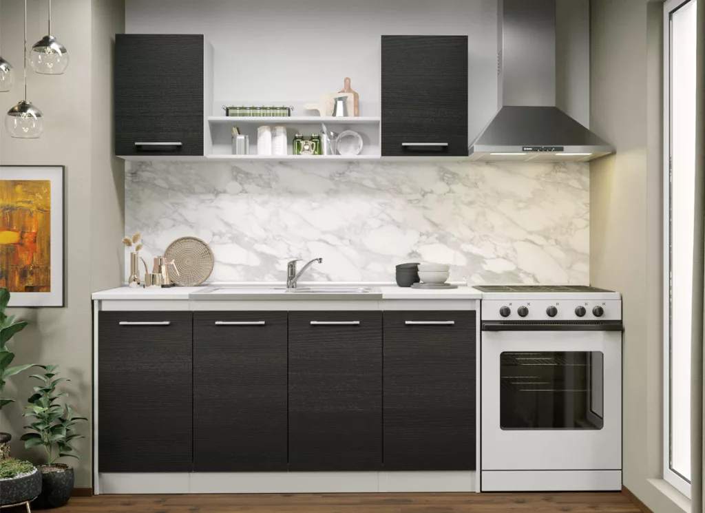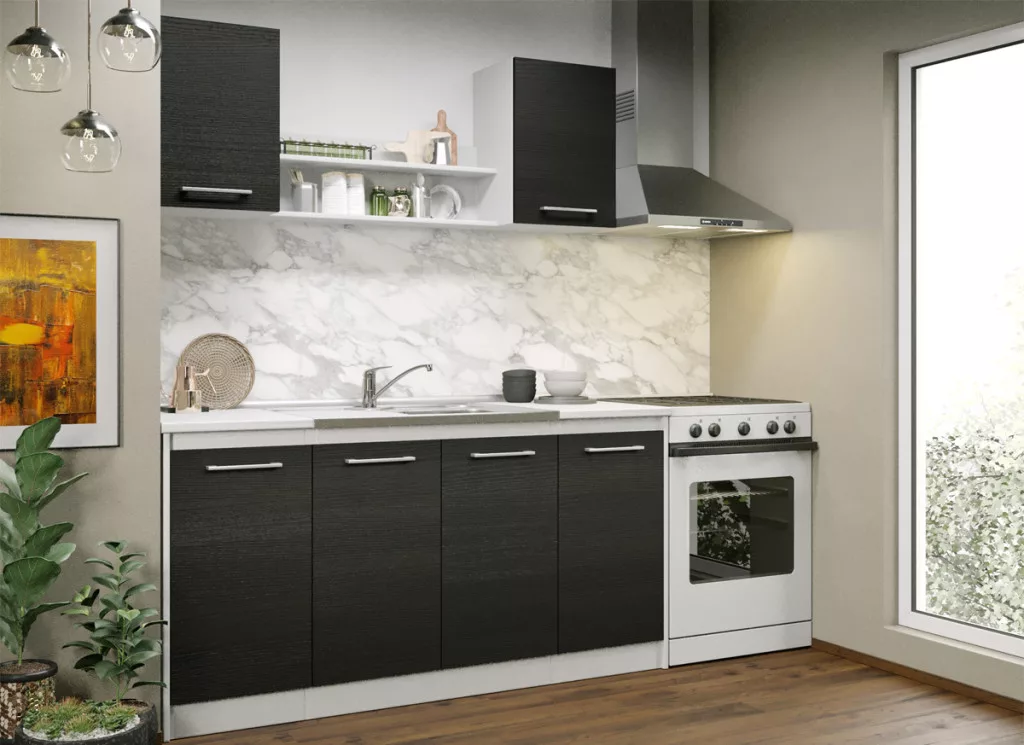 Az Noir konyhablokk alsó, felső, és magas elemei tágas tárolóhelyet biztosít a beépíthető készülékek, és a konyhai eszközök számára. Az elemek 16 mm-es préselt forgácslapból készülnek. A fehér és a ferrara kombinációja eleganciát és kifinomultságot közvetít.