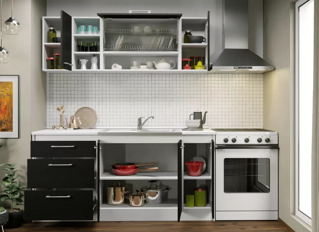 - A háztartási gépek és a mosogatótálca nem tartozéka a konyháknak.