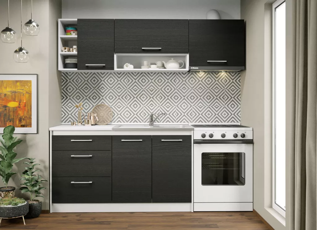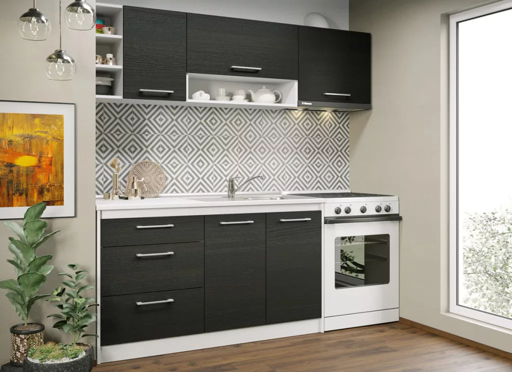 Az Noir konyhablokk alsó, felső, és magas elemei tágas tárolóhelyet biztosít a beépíthető készülékek, és a konyhai eszközök számára. Az elemek 16 mm-es préselt forgácslapból készülnek. A fehér és a ferrara kombinációja eleganciát és kifinomultságot közvetít.