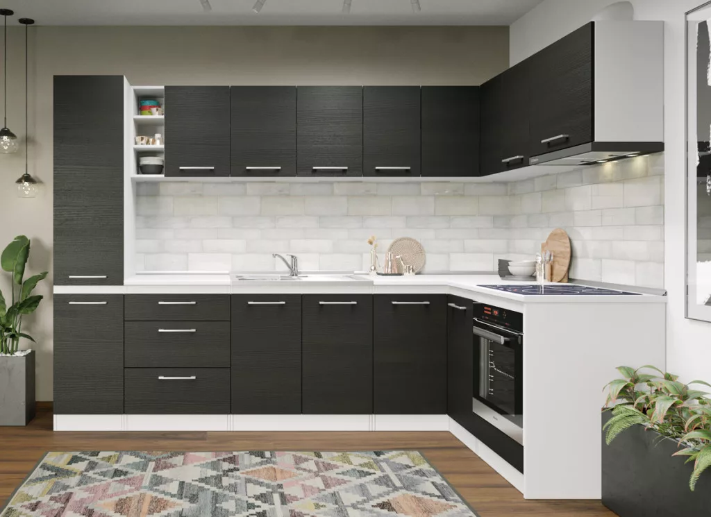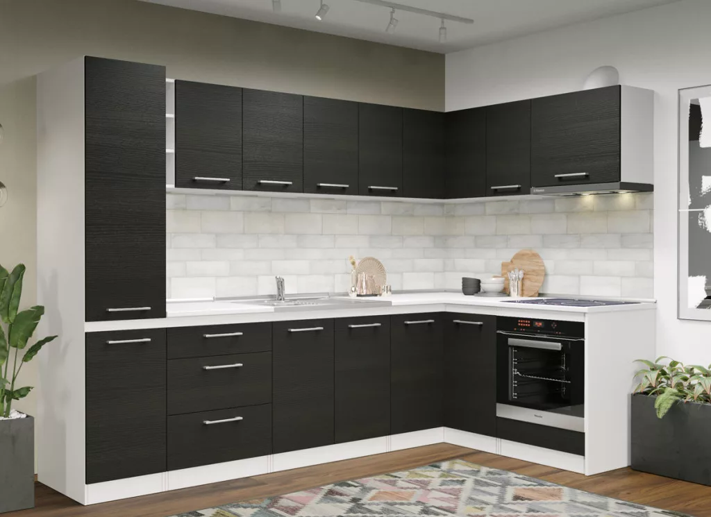 Az Noir konyhablokk alsó, felső, és magas elemei tágas tárolóhelyet biztosít a beépíthető készülékek, és a konyhai eszközök számára. Az elemek 16 mm-es préselt forgácslapból készülnek. A fehér és a ferrara kombinációja eleganciát és kifinomultságot közvetít.