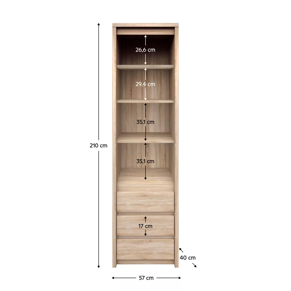 Könyvespolc, DTD laminált, tölgy sonoma, NORTY TYP 6