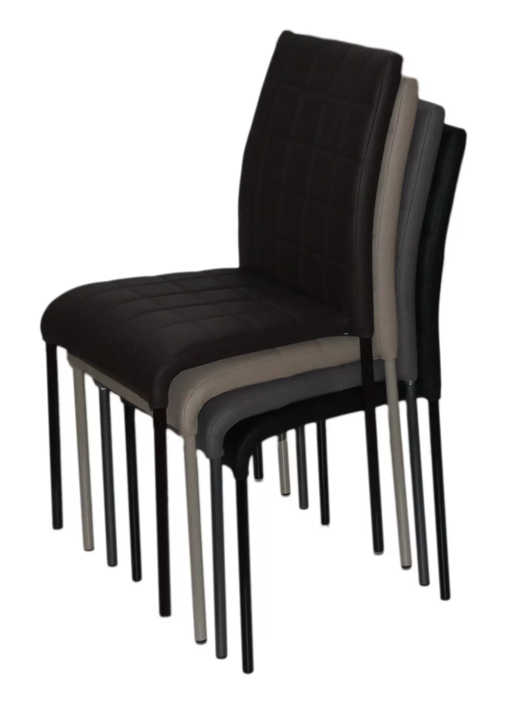 Főbb jellemzői: krómozott fém szerkezet, műbőr kárpitozott hát és ülőlappal. Rakásolható verzió.