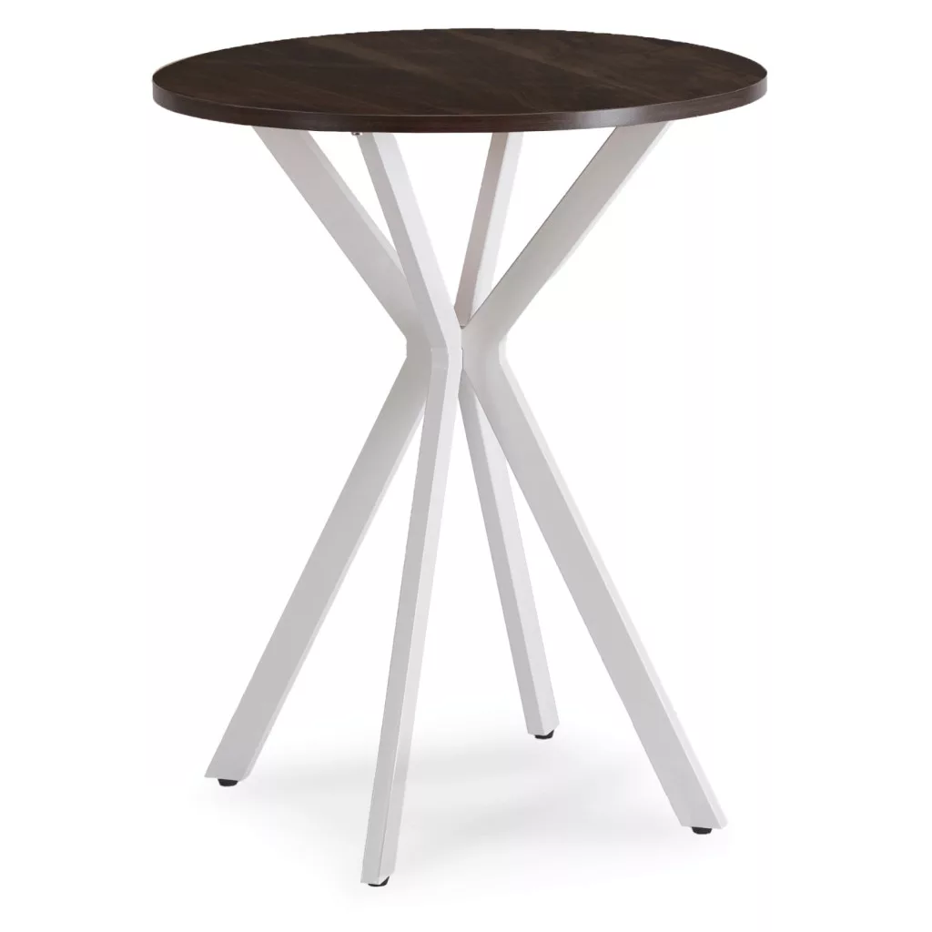 Lauren 60 cm-es kerek asztal, diófa/fehér. A kevesebb több – különösen, ha átgondolt dizájnról van szó. A diófa és fehér színű Lauren 60 cm-es kerek asztal a funkcionalitás és a finom esztétika ötvözete, amely tökéletesen illeszkedik kis helyiségekbe. Maximális lehetőségek kompakt formában. 60 cm átmérőjével a Lauren asztal ideális kis helyiségekbe – konyhákba, teakonyhákba, stúdiókba vagy akár kávézókba. A diófa színű MDF asztallap hangulatos és természetes jelleget kölcsönöz a belső térnek, harmonikus teret teremtve a mindennapi megbeszélésekhez. A kereszt alakú elrendezésű fehér acél lábazat vizuális könnyedséget és modern hangzást kölcsönöz a stabilitás vagy a tartósság feláldozása nélkül. Hová helyezze? A konyhába