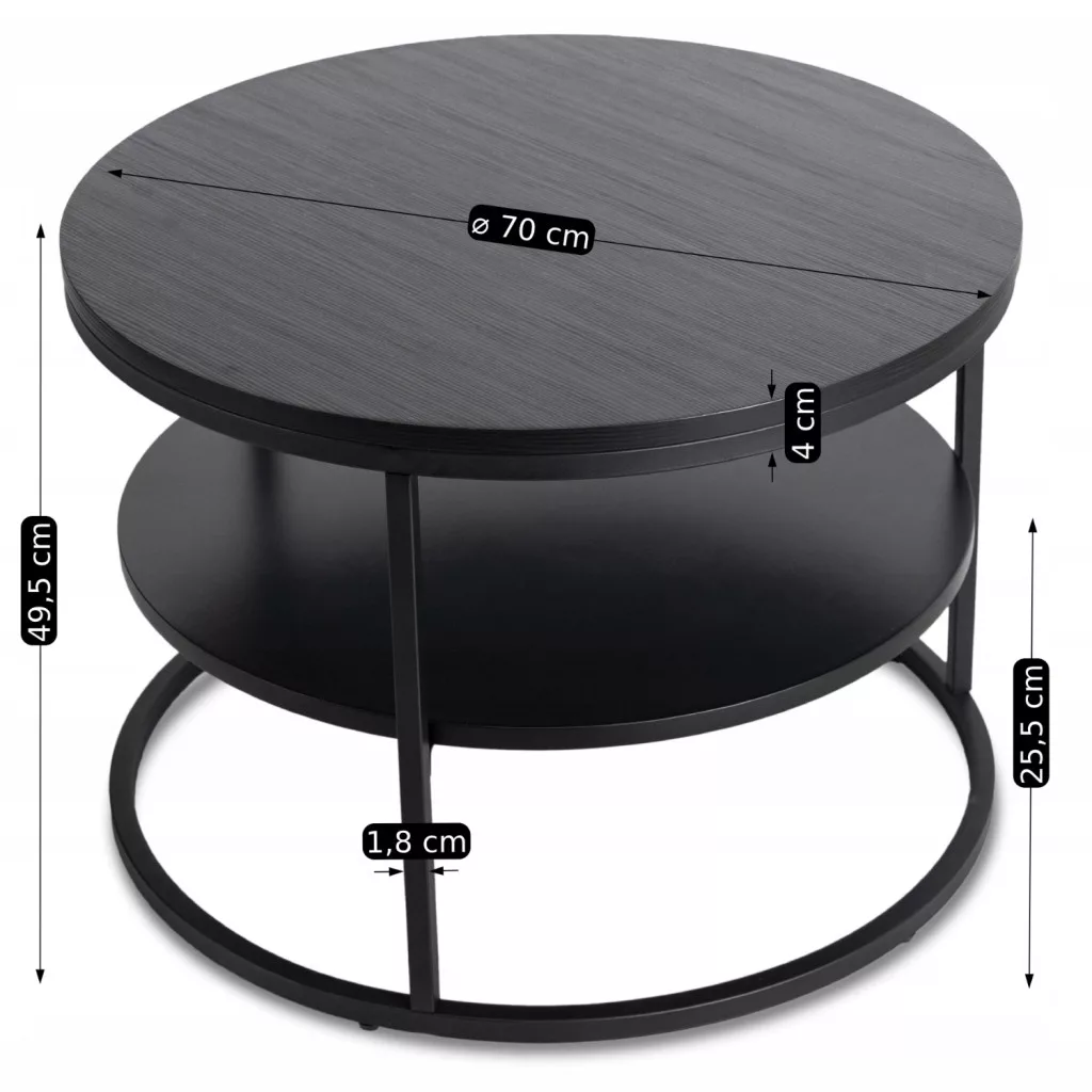 Termékelőnyök: Tartósság, amire számíthat. Az asztallap tartós MDF-ből készült és ABS élekkel megerősített. Ez hosszú élettartamot garantál. Stabilitás, amit láthat és érezhet. A fémkeret biztosítja a szilárdságot, megakadályozva az asztal billegését vagy elcsúszását. Két szint – több lehetőség. A felső asztallap egy csésze kávénak, az alsó könyveknek, távirányítóknak és dekorációknak való. Minden kézközelben van. Könnyű karbantartás. Az asztal tökéletes mindennapi használatra – egyszerűen törölje át a felületet egy ruhával. Ideális választás számos enteriőrbe. Modern dizájn a javából. A mélyfekete szín szinte bármilyen helyiségbe illik – loftba és minimalista enteriőrbe egyaránt. Kicsi, de sokat tud. Kis méretének és praktikumának köszönhetően otthoni és kereskedelmi helyiségekbe egyaránt illik.