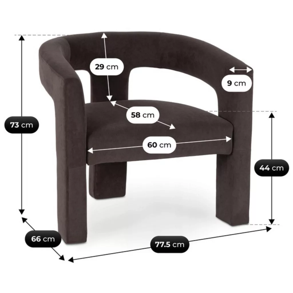 Lille barna bársony pihenőfotel praktikus és esztétikus megoldás mind a modern, mind a klasszikus enteriőrökbe. Tökéletes nappalikba, hálószobákba vagy otthoni irodákba, valamint kereskedelmi helyiségekbe, például várótermekbe, szállodákba, szépségszalonokba és kávézókba. A barna színvilág a bársony anyaggal kombinálva meleg, elegáns jelleget kölcsönöz a belső térnek. Miért válassza ezt a modellt? Kényelem: A széles és puha ülés kényelmet biztosít mind a rövid szünetek, mind a hosszabb ülések során. Ergonomikus háttámla: A háttámla lekerekített formája jó háttámaszt biztosít és kényelmes testtartást biztosít. Bársony kárpitozás: Az anyag puha tapintású, esztétikus és mindennapi használatra alkalmas. Stabil konstrukció: A masszív konstrukció garantálja a tartósságot és a biztonságot, míg az egyszerű kialakításnak köszönhetően a szék könnyen adaptálható különféle enteriőrökbe. Hová illik? Modern elrendezésekhez, amelyek kiemelik a kifinomult stílust, hangulatos belső terekbe, ahol a kikapcsolódás központjává válik, klasszikus terekbe, amelyek mélységet és eleganciát adnak, valamint kereskedelmi létesítményekbe, ahol a kényelem és az első benyomás számít. A Lille fotel kényelmes választás bármilyen enteriőrbe.