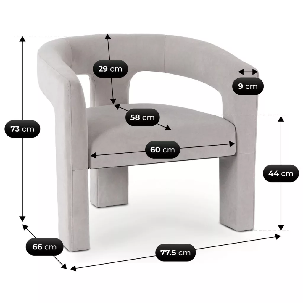 LILLE Lounge Fotel szürke bársonyból. Kényelmes, modern dizájnú fotelt keres? A Lille modell tökéletes nappalikba vagy hálószobákba, valamint kereskedelmi helyiségekbe – szépségszalonokba, várótermekbe, szállodákba vagy stílusos kávézókba. Visszafogott szürke színvilága és puha bársonya elegáns és kellemes hangulatot teremt. Miért válassza? Kényelem: A széles, puha és jól formált ülőfelület magas kényelmet biztosít még hosszabb pihenés során is. Ergonómia: A lekerekített háttámla tökéletesen illeszkedik a háttámlához, kellemes otthonosság érzetét keltve. Bársony: A bársony anyag elegáns, kellemes tapintású, és mindennapi használatra alkalmas. Tartósság: A gondosan megtervezett szerkezet vizuális könnyedséget kölcsönöz a széknek, miközben stabilitást és biztonságot nyújt. Hová illik? Hangulatos környezetben, a tökéletes relaxációs zóna megteremtésében; Klasszikus terekben, finom eleganciát hozva létre; Kereskedelmi létesítményekben, ahol kényelmes és esztétikus designelemmé válik. Lille fotel – kényelem ízléses változatban.