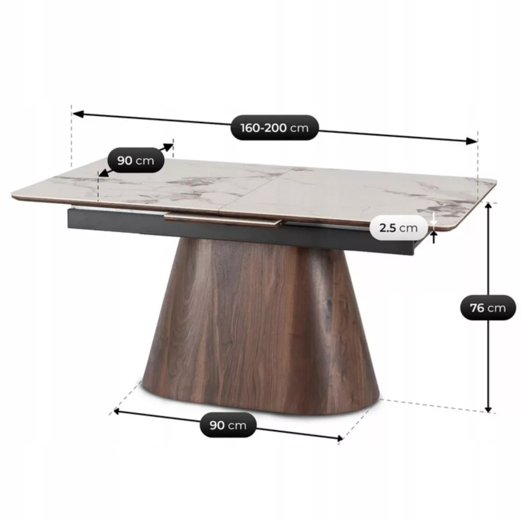 LIZBONA Kerámia Kihúzható Asztal 160-200 cm Fehér Márvány/Diófa